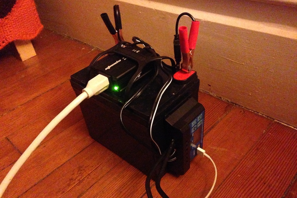 - We’ve upgraded the battery from a 420Wh Deep Cycle Lead-Acid battery (about 100Wh usable capacity) to a 192Wh LiFePO (Lithium Iron Phosphate) battery (192Wh usable capacity, or double the lead-acid) as the lithium batteries are coming down in price faster than lead acid batteries are. We were unsure on whether to update these three changes into this original article or write a whole new one, but decided to update the original as this is the one that most people will find on search.